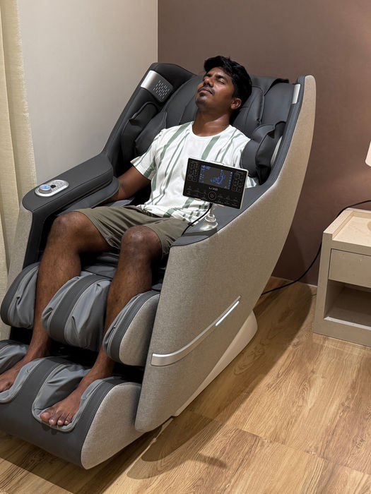 This premium suite blends comfort and innovation — featuring a plush king-size bed, a massage chair, and a jacuzzi with foam and temperature control. Enjoy a smart automated toilet, a dressing mirror, a safety locker, and a private balcony with the most breathtaking sunset views over the Kolli Hills.